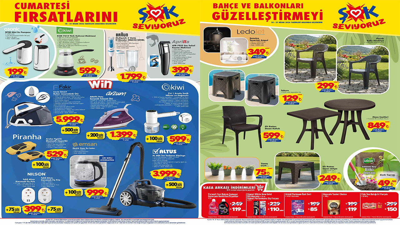 Mini su pompası, Türk kahvesi makinesi, saç sakal kesme makinesi, ütü, cam su ısıtıcı, şemsiye tasarımlı ampul, plastik kollu sandalye, tabure, masa çeşitleri, çamaşır deterjanı ve ton balığı gibi ürünlerin yer aldığı 21 Nisan tarihine kadar geçerli olacak ŞOK kataloğu yayınlandı.